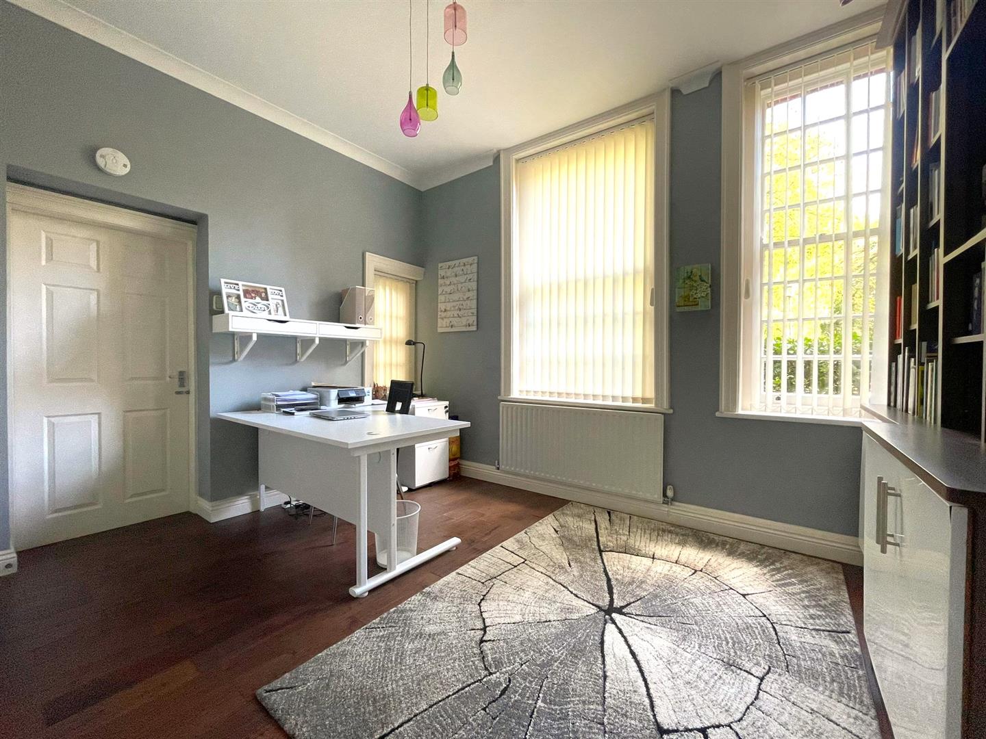A beautifully decorated room currently used as a separate dining room, there is a large sash window looking out to the side of the property. Coving to the ceiling blends the traditional features with the modern decoration. Again the room is heated by a wall mounted radiator and is carpeted.