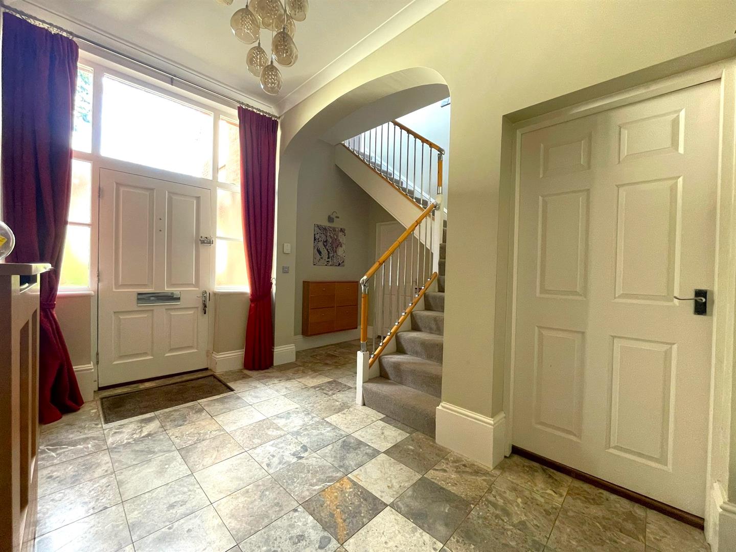 Stunning Entrance hall filled with natural light embracing both modern and traditional features with tiled flooring, coving to ceiling, and staircase to first floor.