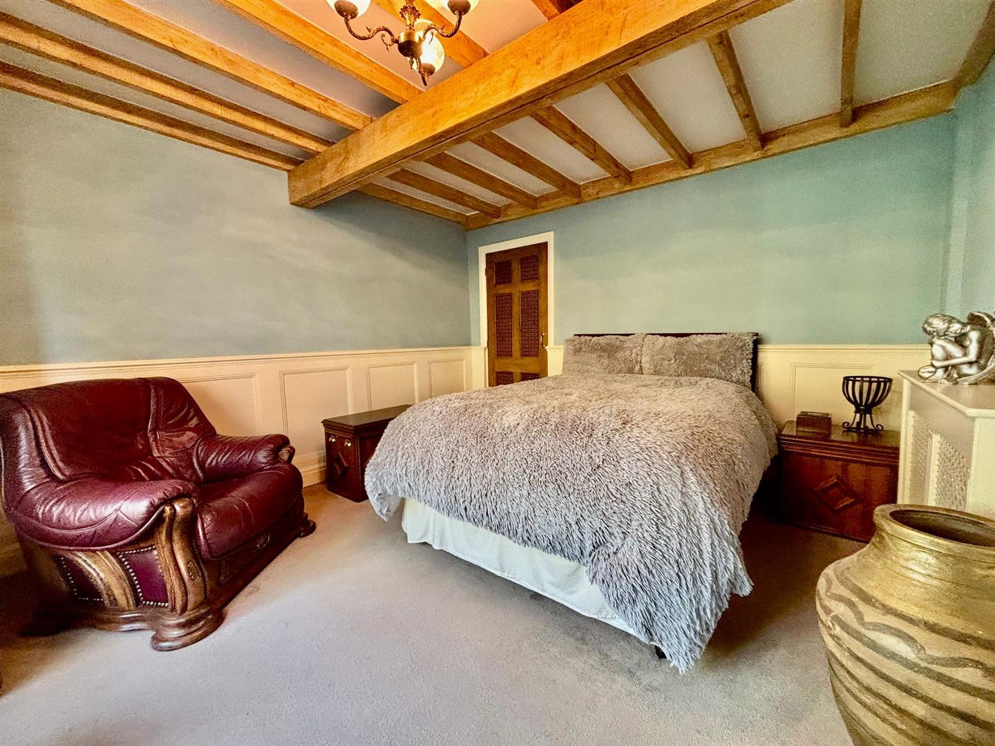 Window to rear of property, part panelled walls, beams to ceiling, carpeted, radiator.