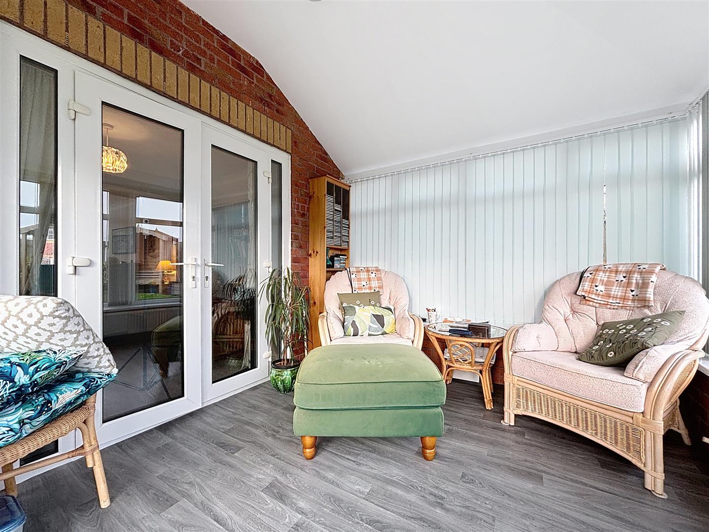 Windows to rear and side with views over the gardens, French doors to side, insulated roof, vinyl flooring and radiator.