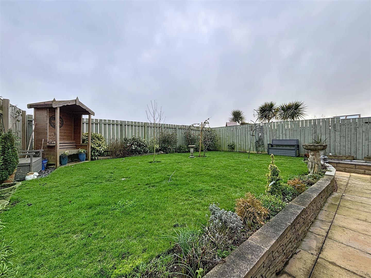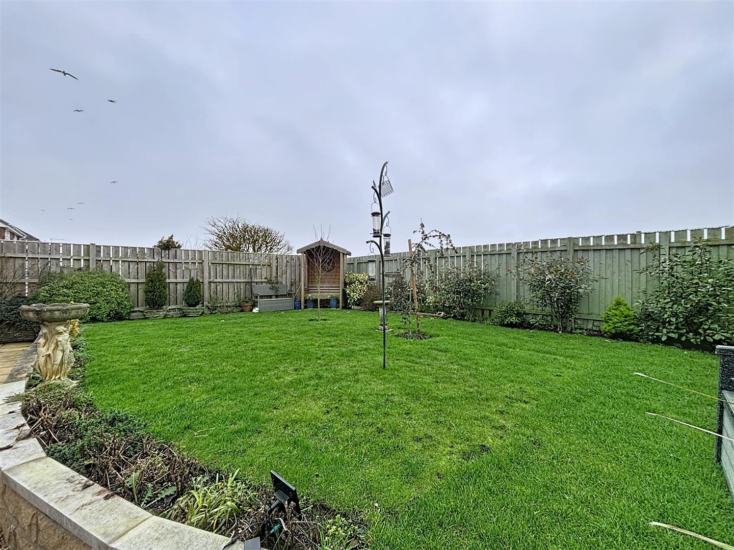Laid mainly to lawn, patio and paved areas connected by pathway, fenced boundaries, plant and flower shrubs. Stunning views across the countryside.