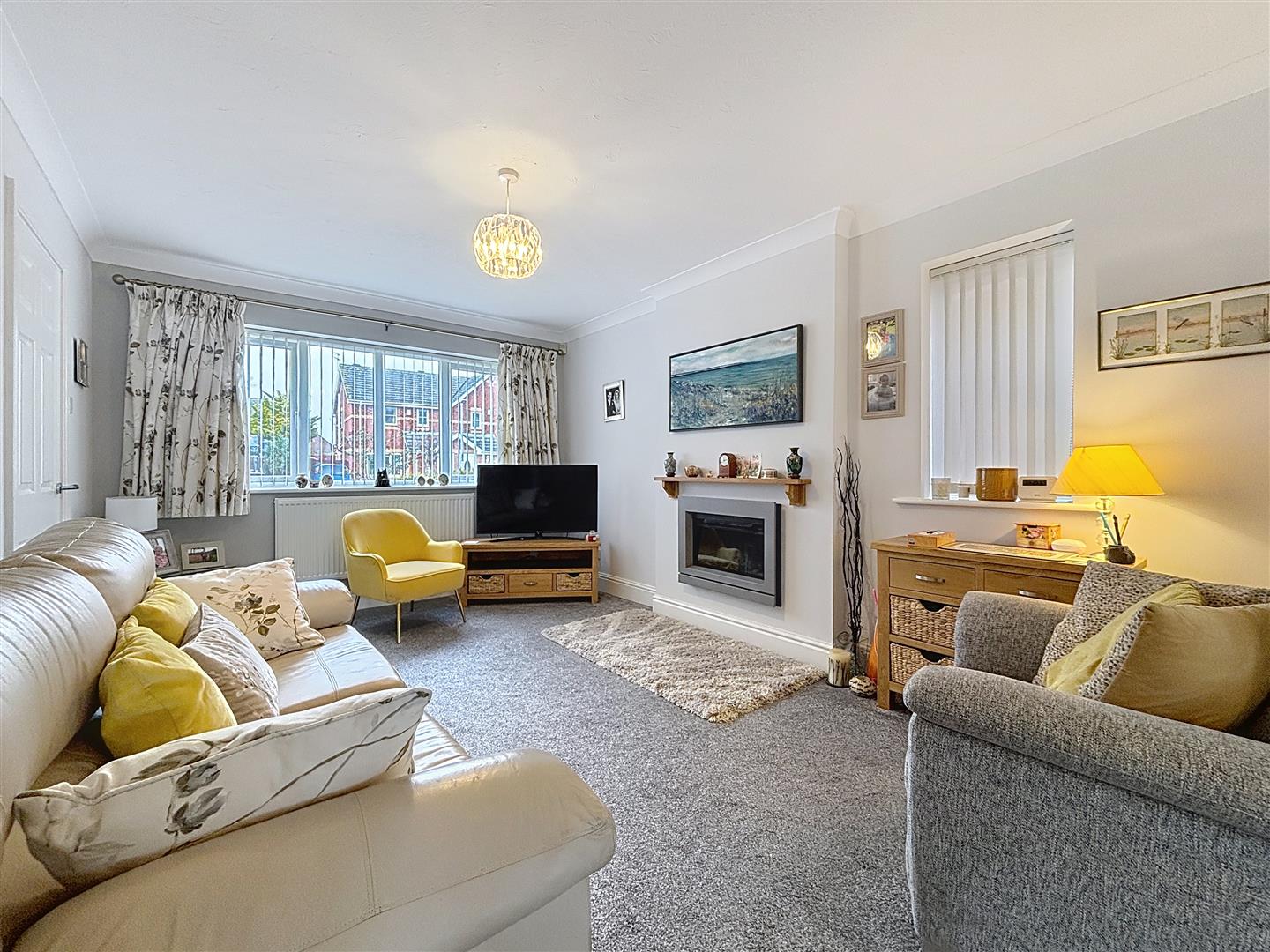 Window to front and side, fireplace, coving to ceiling, carpet and radiator. Open plan to dining room.