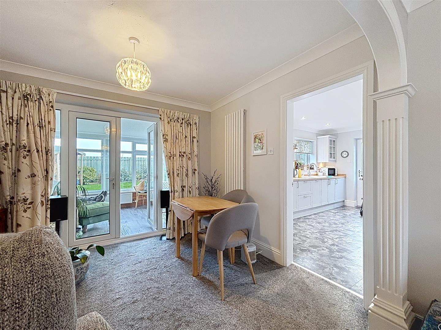 French doors to conservatory, coving to ceiling, carpet and radiator.