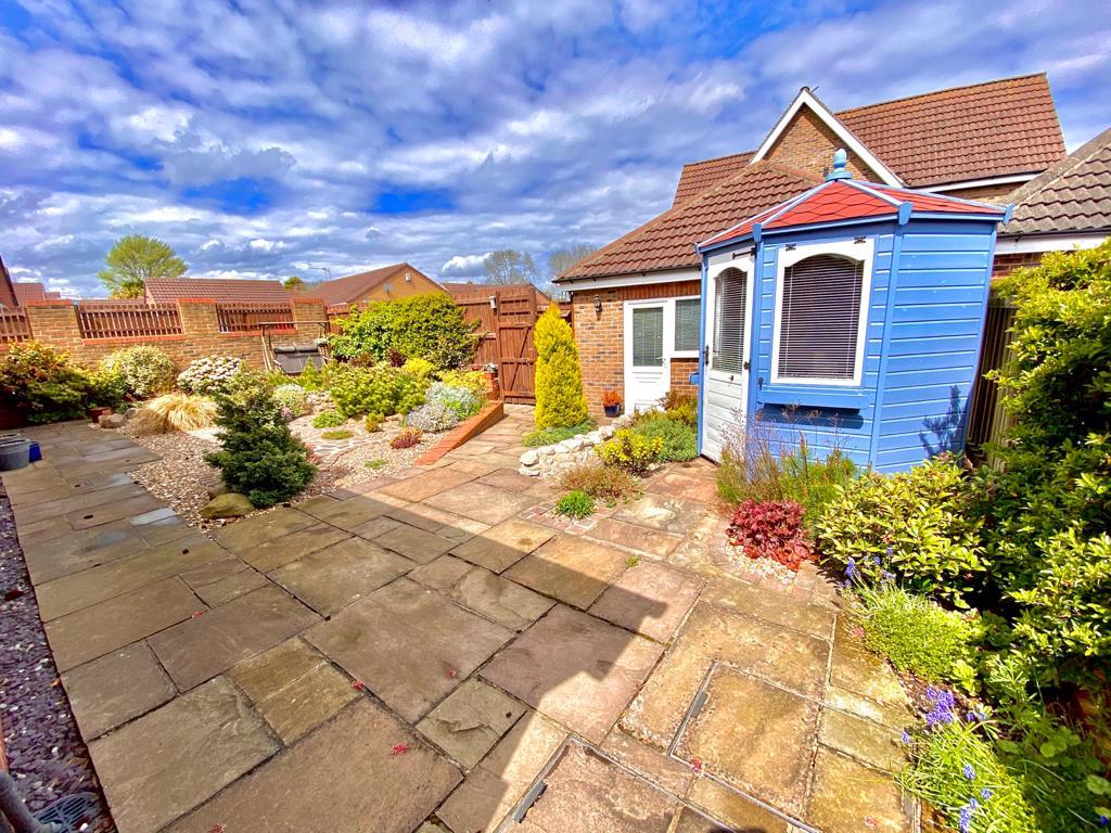 Immaculately presented and manicured rear garden that is well stocked with shrubs. Mainly paved and gravelled with fenced boundaries and summer house. Outside tap.