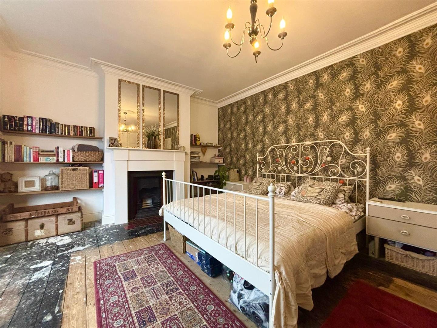 Includes a front facing bay window, fireplace, corning wooden floor, panelled wall, picture rail, ceiling rose and radiator.