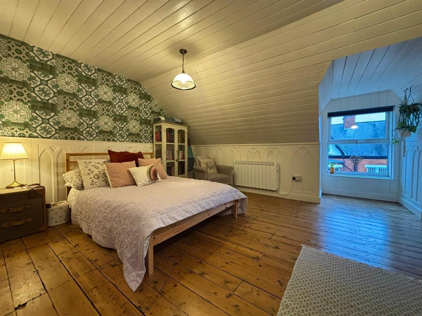 Front facing dormer window and rooflight facing the rear. And includes wooden floor, ornate wooden panelling and electric radiator. Located on the 2nd floor