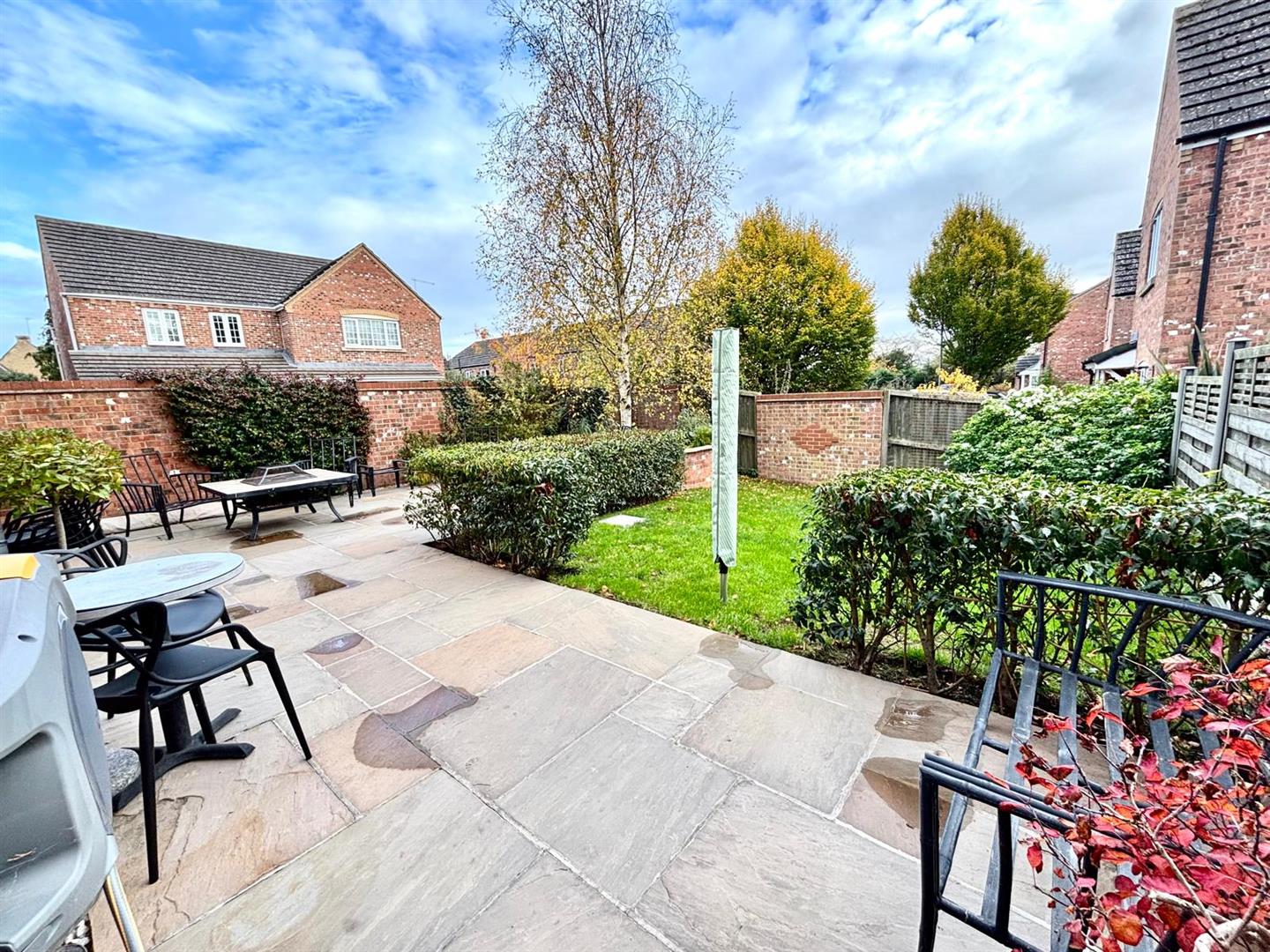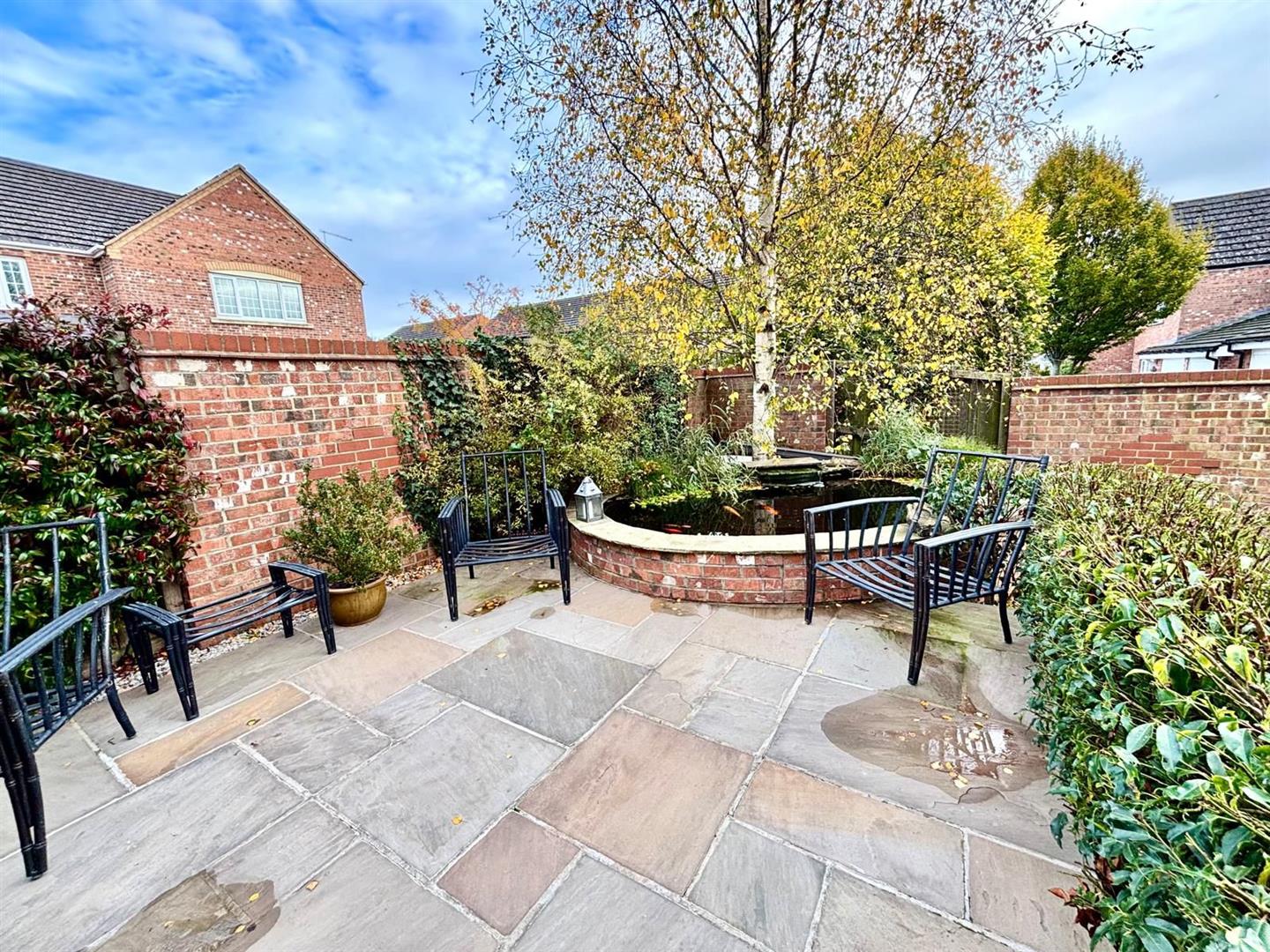 Laid mainly to lawn with paved seating area. Fully enclosed with walled and fenced boundaries. Planted borders, mature tree and ornamental fish pond.