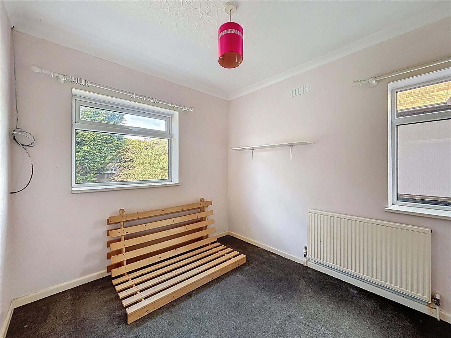 Window to front, and two to side, coving to ceiling, carpet and radiator.