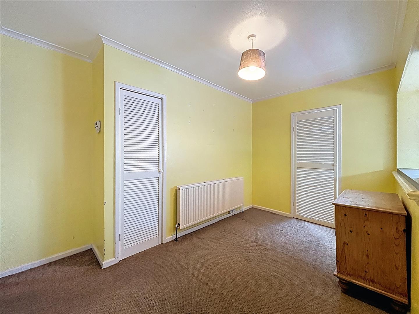 Open serving to kitchen, door to utility. Coving to ceiling, cupboard, carpet and radiator.