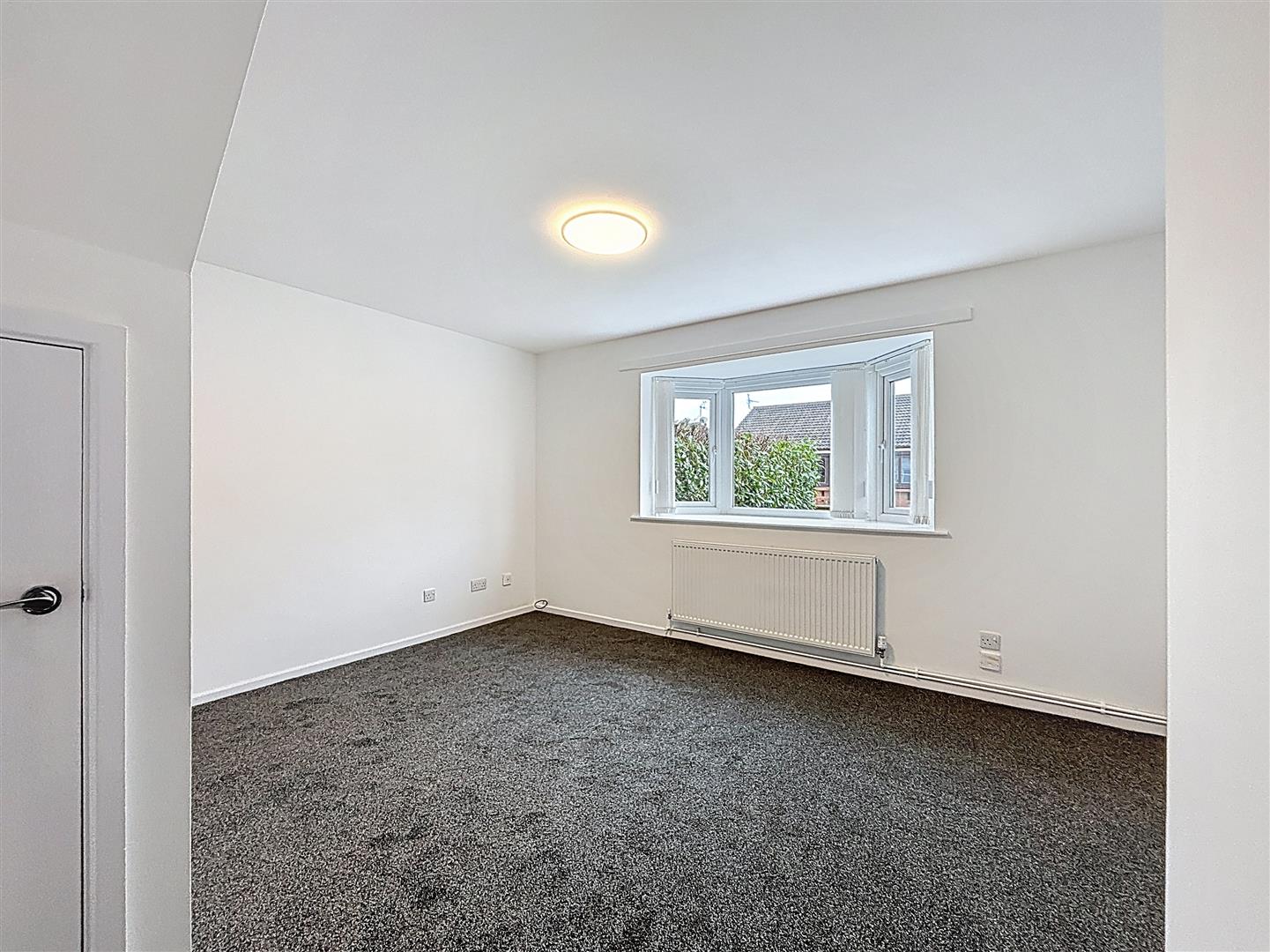 Window to front, carpet and radiator.