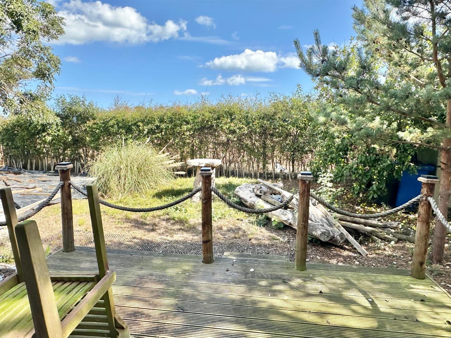 This garden offers a lawned area, Multiple garden sheds, Hedge boundaries and planted boarders. It also features a gravelled side driveway, Rear patio area, Covered arbour, Polytunnel with trees and shrubs.