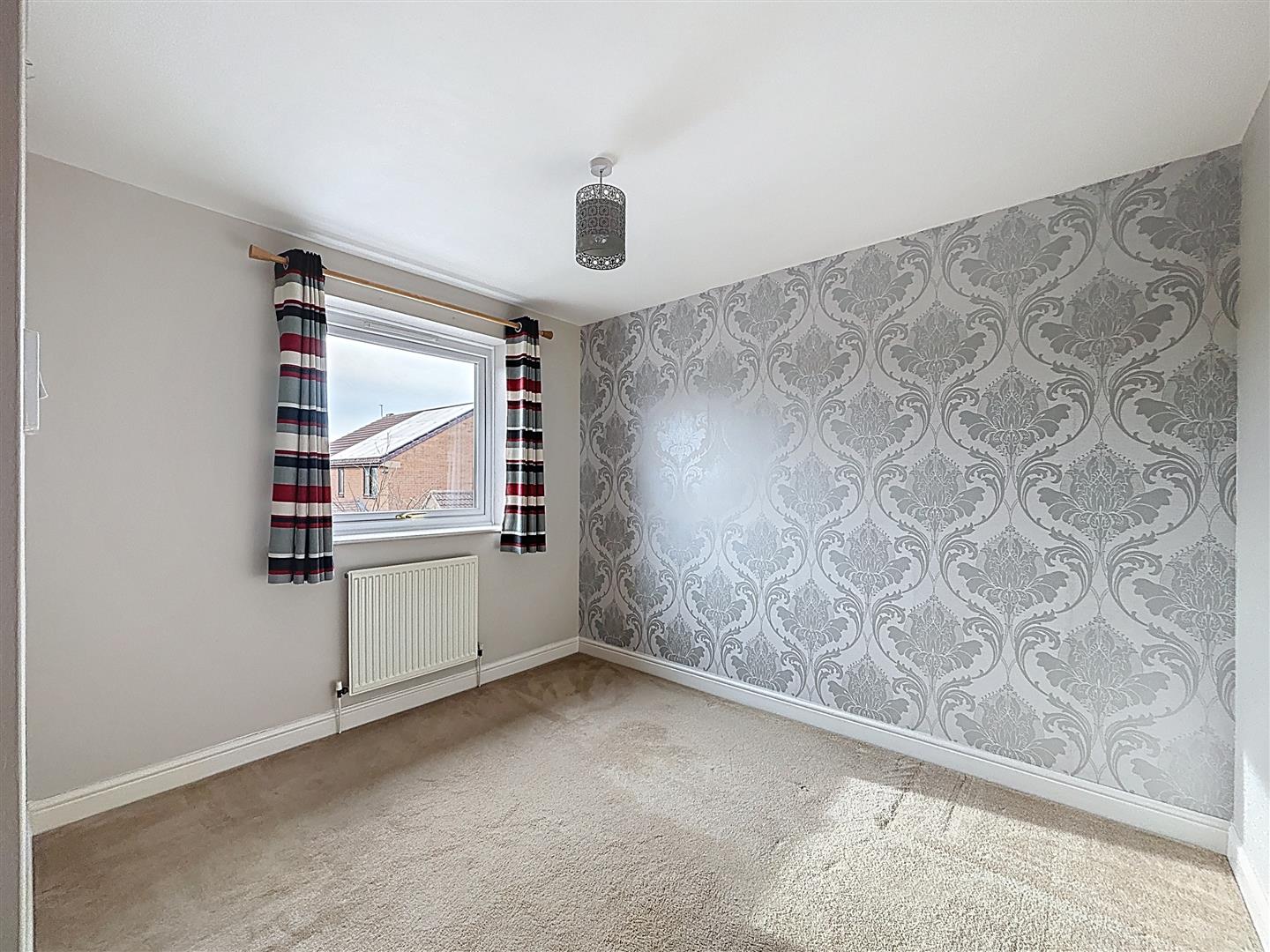 Window to rear of property, radiator, carpeted.