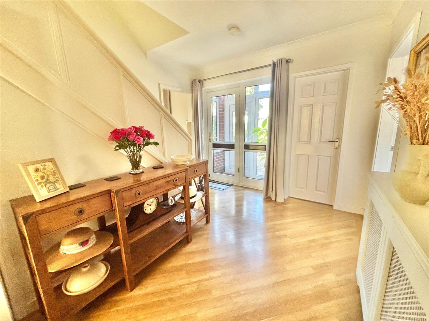 Entrance door, staircase to first floor with understairs cupboard, Amtico flooring, coving to ceiling and radiator.
