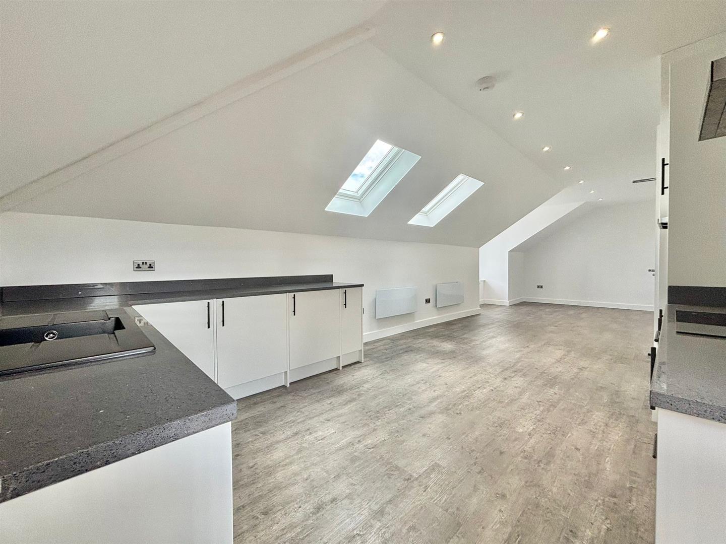 Dormer window to front of property with views out to the sea and a window seat, two Velux windows to the front of the property and window to the rear of the property allowing natural light to flood in and fill this stunning space! The kitchen has been beautifully finished with high quality fitted base units, work surfaces, one and a half bowl sink and single drainer, built in double oven and hob, integrated under counter fridge and freezer, integrated washing machine and dishwasher, extractor fan. Laminate flooring, electric radiator and spotlights complete the room.