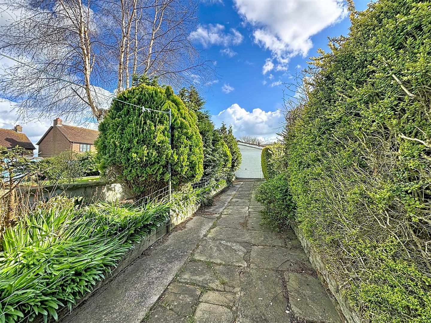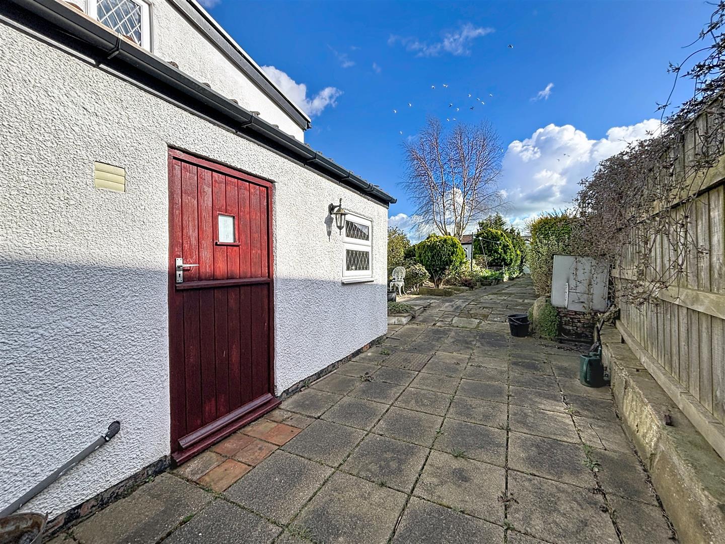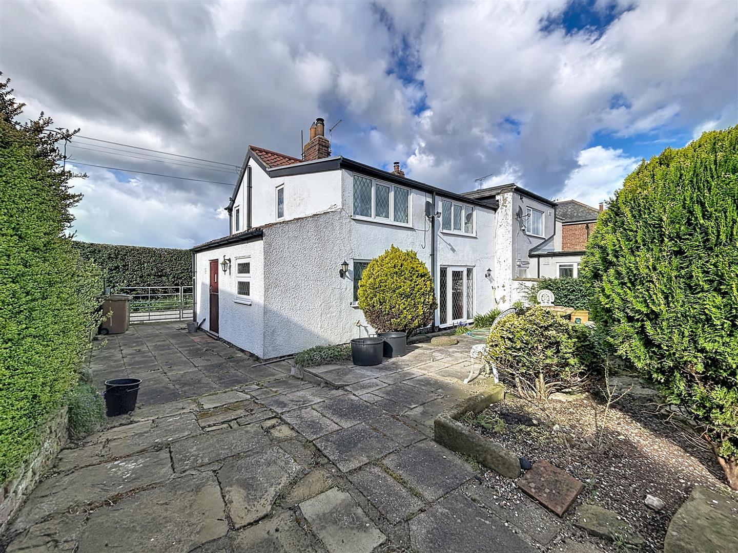 Laid partly to lawn with paved areas, this is a pretty cottage garden that benefits from being south facing. There are planted borders and rockeries, along with an outside tap.