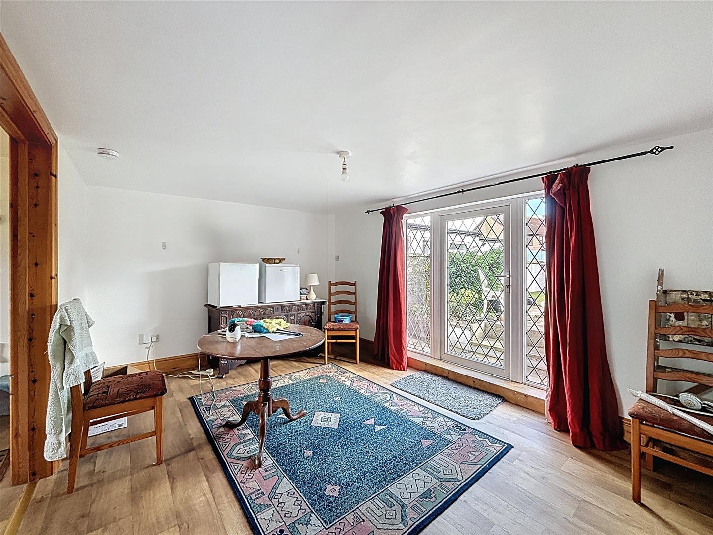Window to rear, doors to garden. Open plan to living room, vinyl flooring.