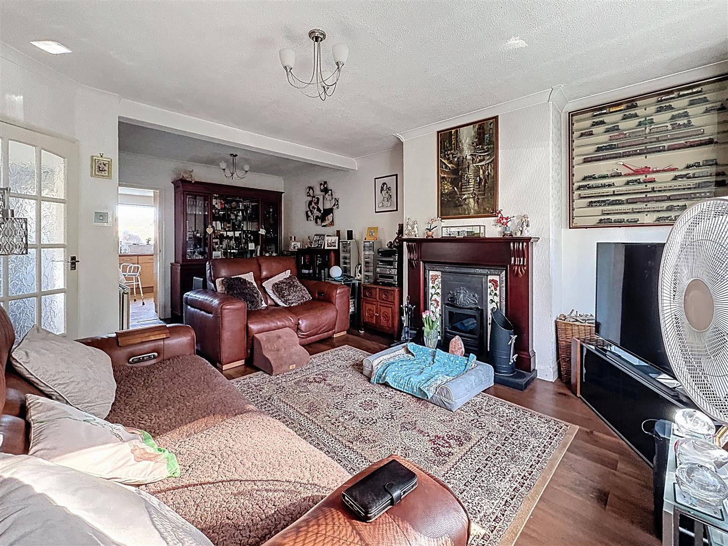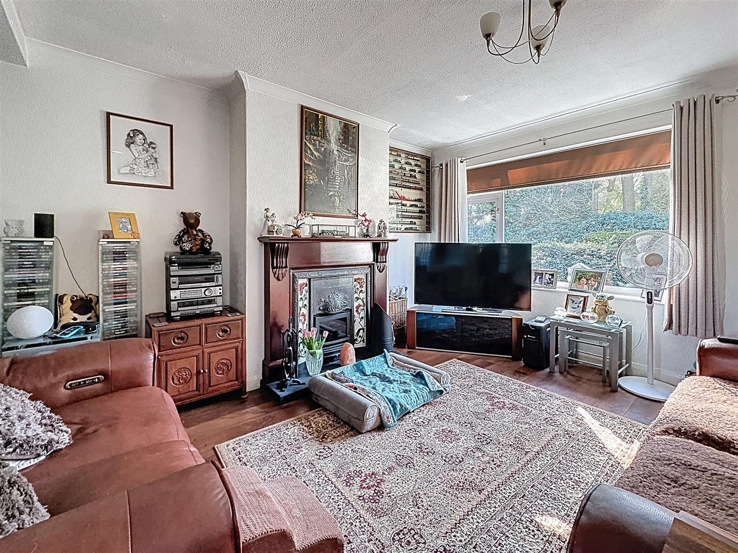Window to front of property, fireplace with log burner, coving to ceiling, laminate flooring, radiator.
