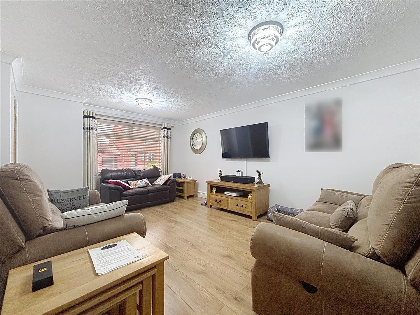 Window to front, coving to ceiling, laminate flooring and two radiators.