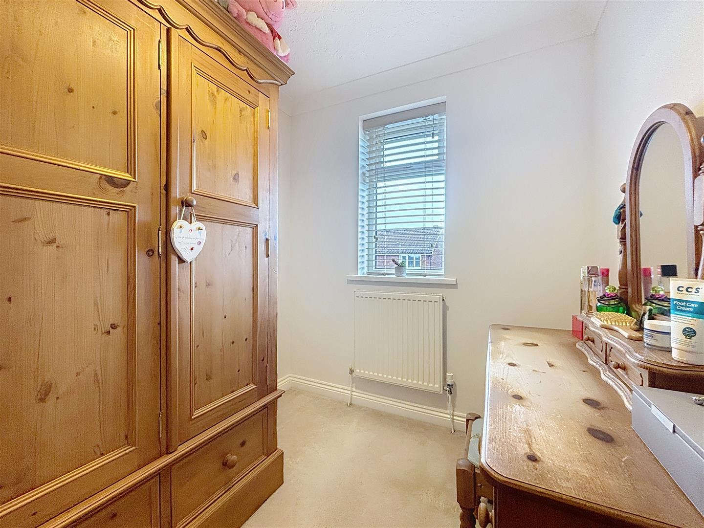 Window to rear, built in wardrobes, carpet and radiator.